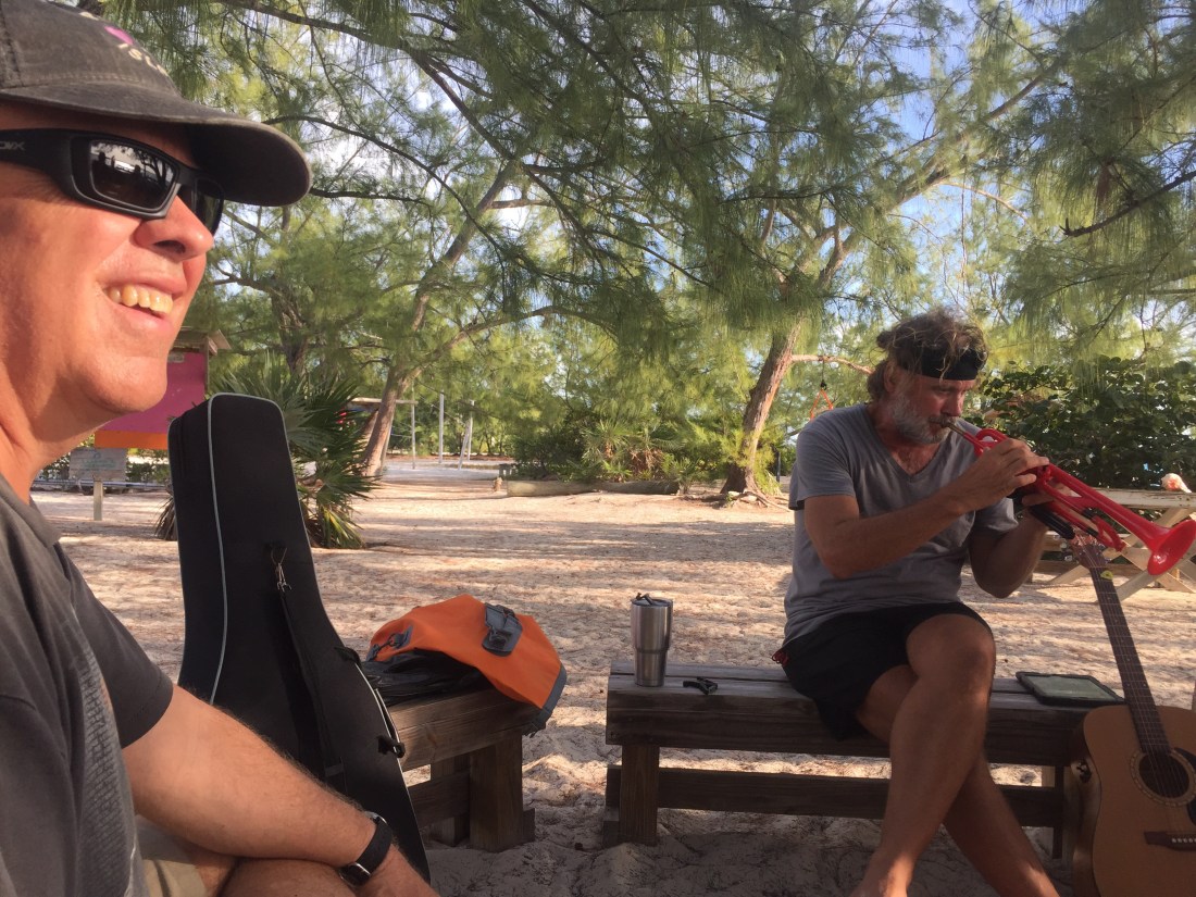 What a fun and talented group of musicians! Tom has started playing a recorder we have on board, and he is covetous of the plastic trumpet Ian on Local Lola has.