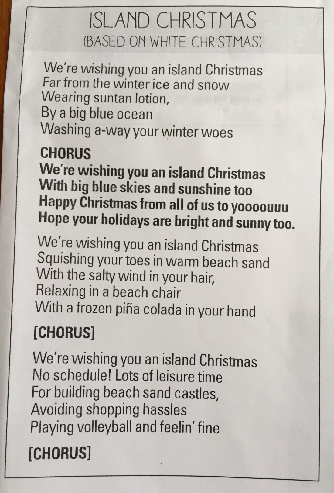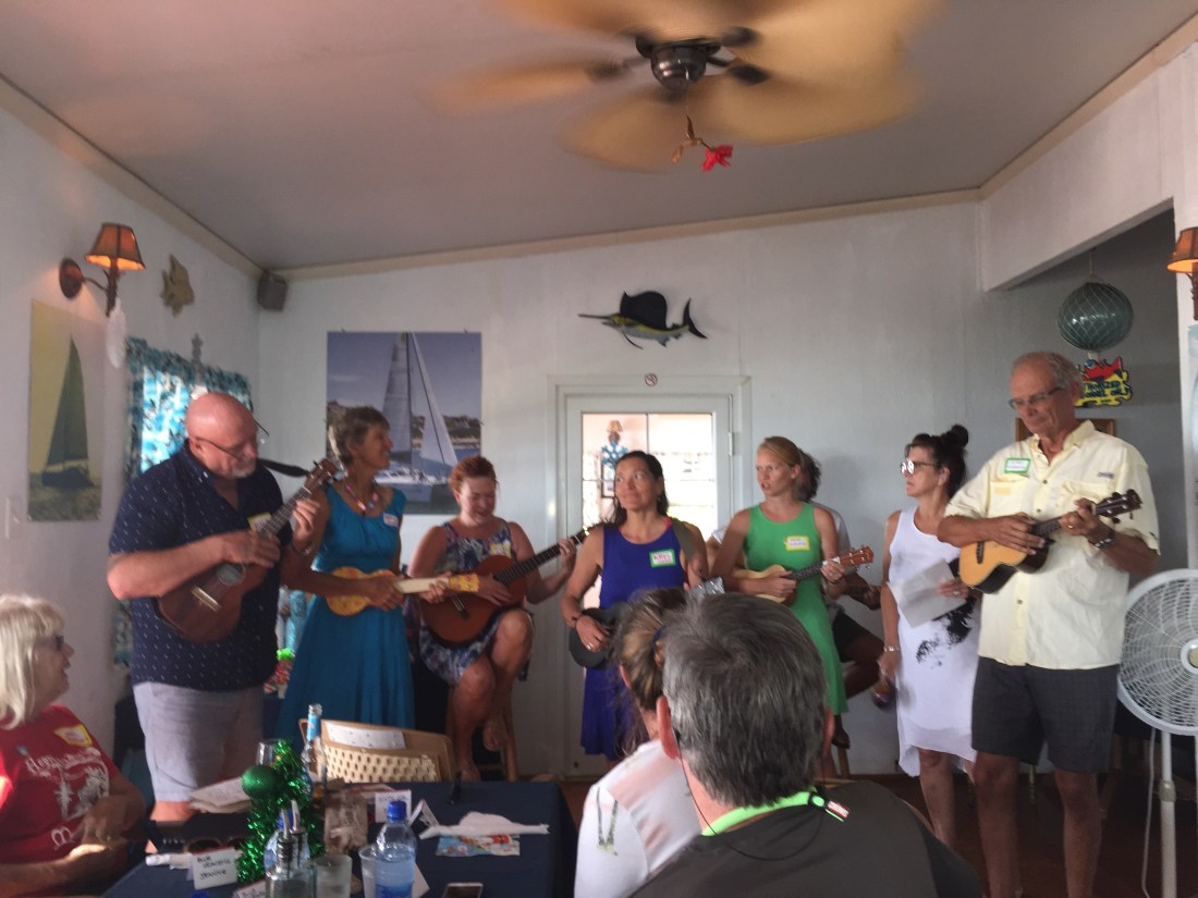 Music is also a big part of beach church on Sundays at 10 AM. Yesterday, we attended the cruisers Christmas luncheon at St. Francis Resort. Seven ukelele musicians led the great sounding sing-along.
