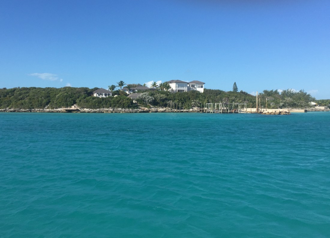 to a beautiful, secure and shallow anchorage around Goat Cay on Great Exuma that we currently share with 3 catamarans: