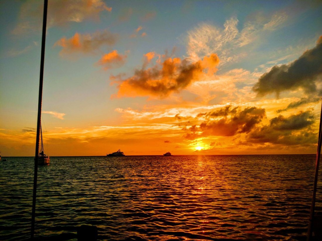 As soon as the anchor was down near Pigeon Cay, guess who went for a swim?After dinner, Alex & Jenna went out on deck to watch the sunset.