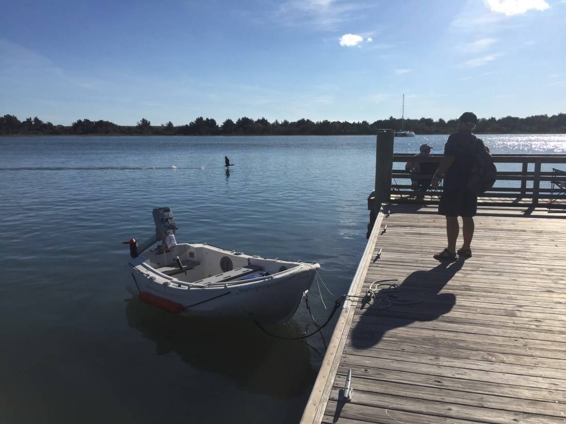 The public dinghy/fishing dock, directly across from the anchorage.