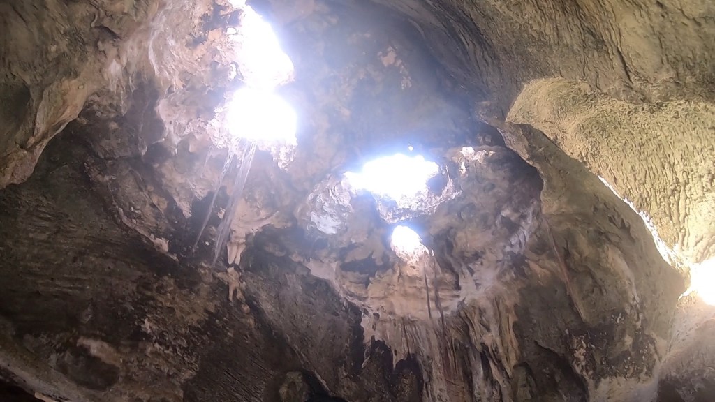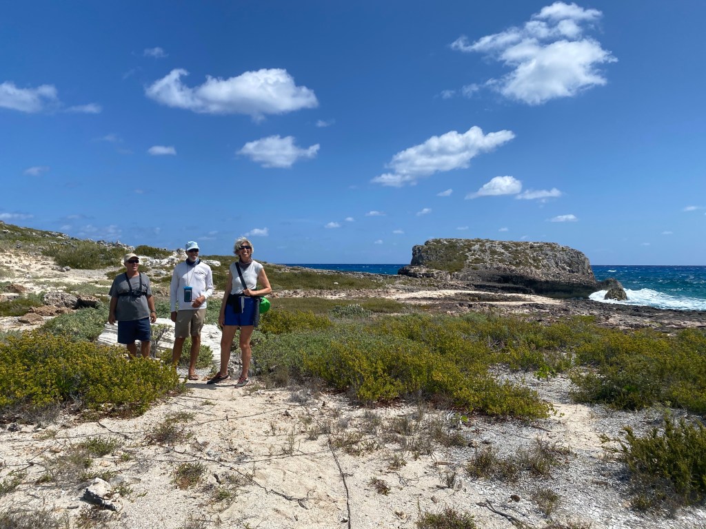 Chatting with some land tourists who explored the mostly under ground mile long Hatchet Bay Cave with Mark.