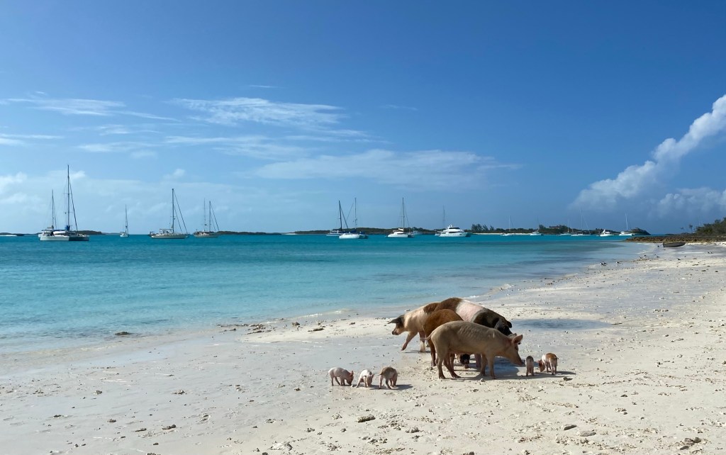Funny way to guard the pigletsShady spot for the pigs to rest Yes, pigs can swim!Big Major’s anchorage From pig beach on Big Majors