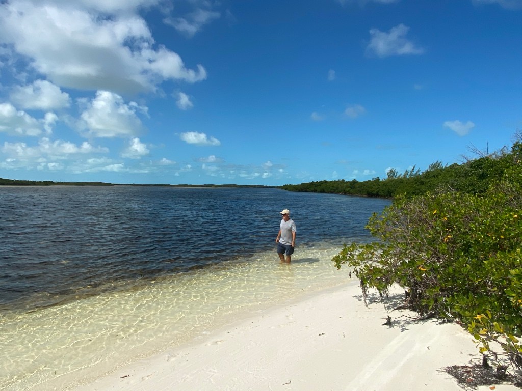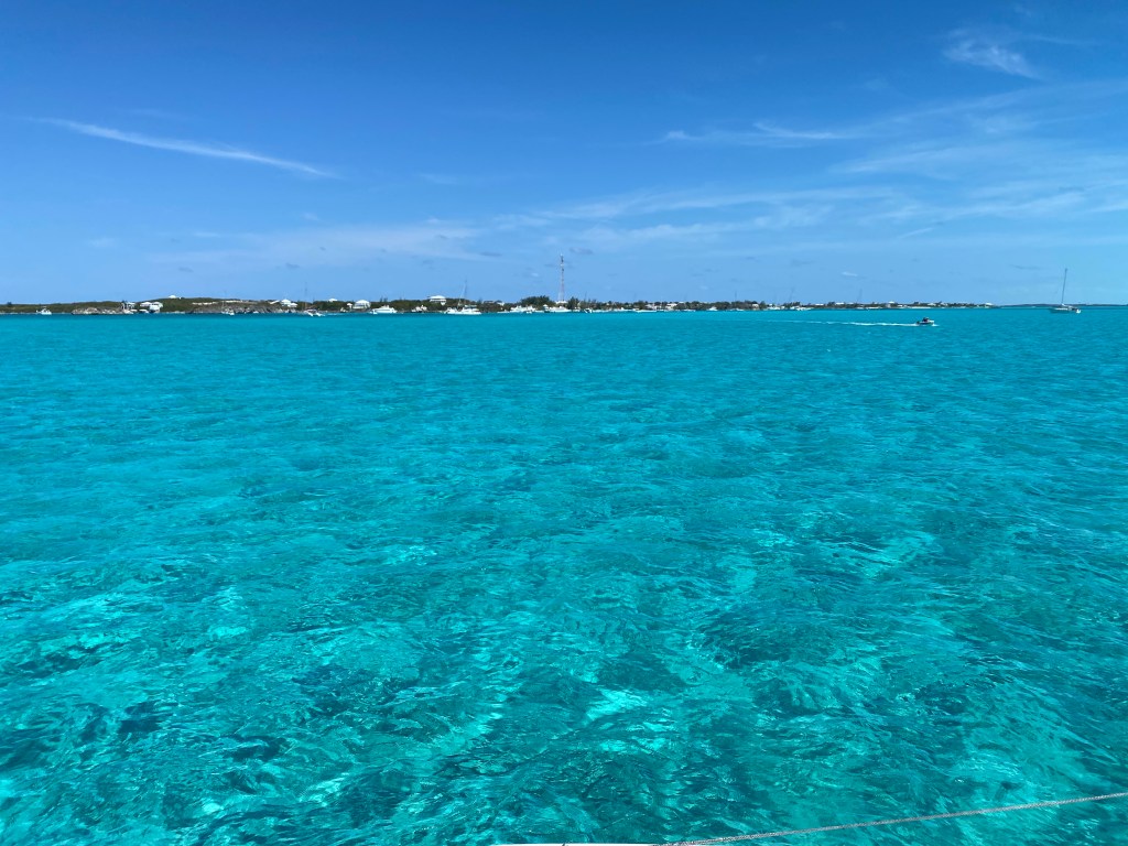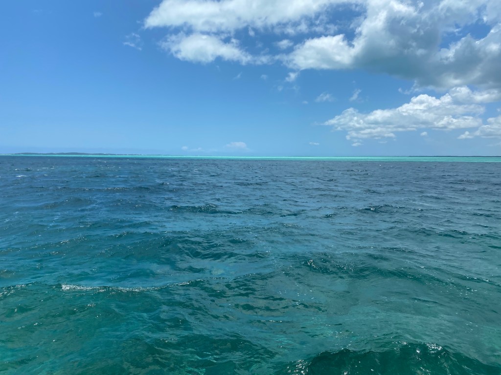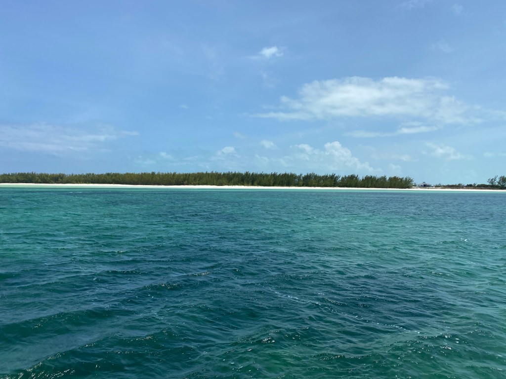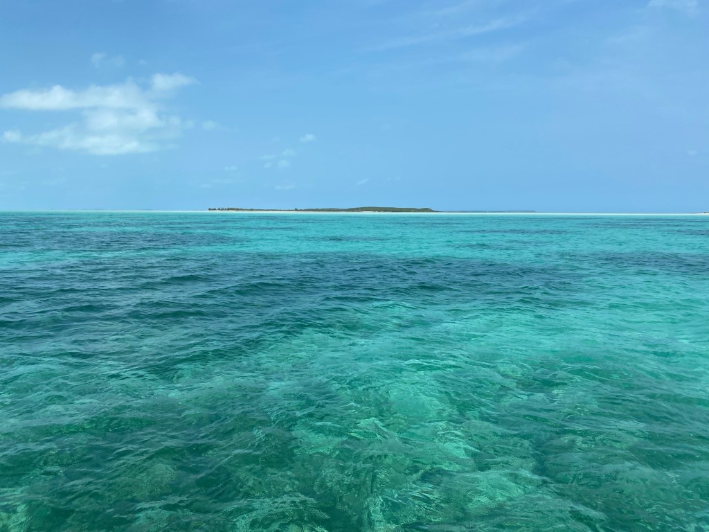Caption: Looking out to sea after entering the Exuma banks via Dotham Cut between Bitter Guana and Great Guana.