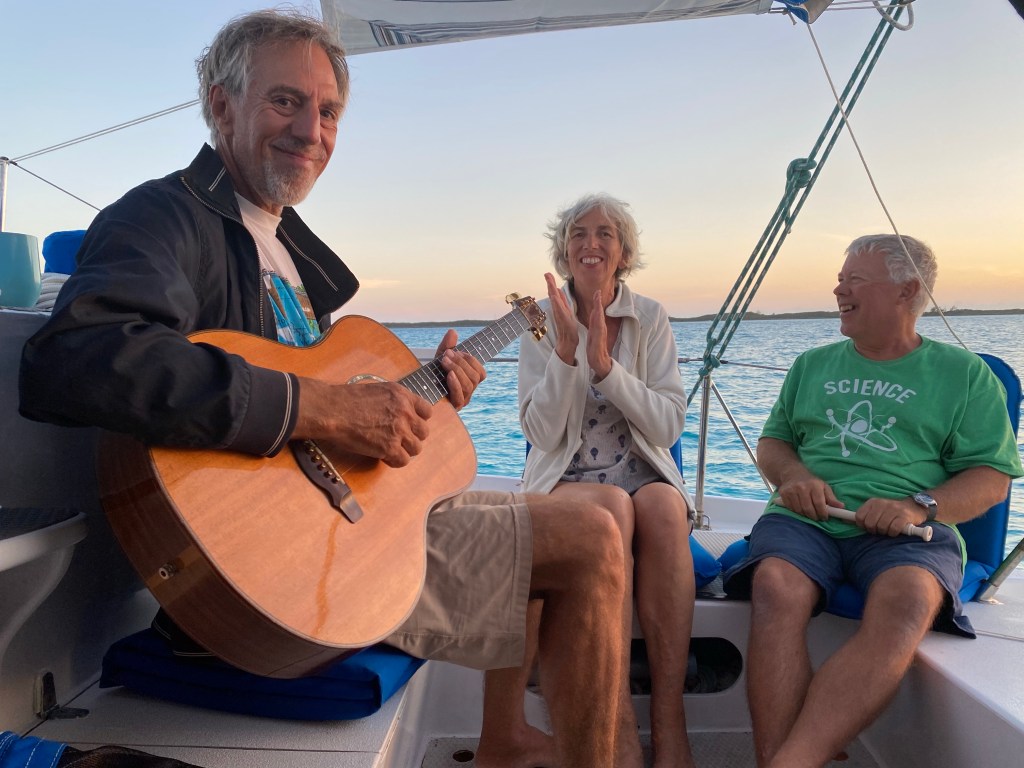 So much fun to sing and make music while the sun goes down. Mark learned a couple new songs at Tom’s suggestion: Bimini and Sail Away from the Kingston Trio. We spent the next week sailing in company with Wild Iris. Next up we sailed north to Big Majors. This time we anchored on the southeast side closer to Thunderball Grotto.