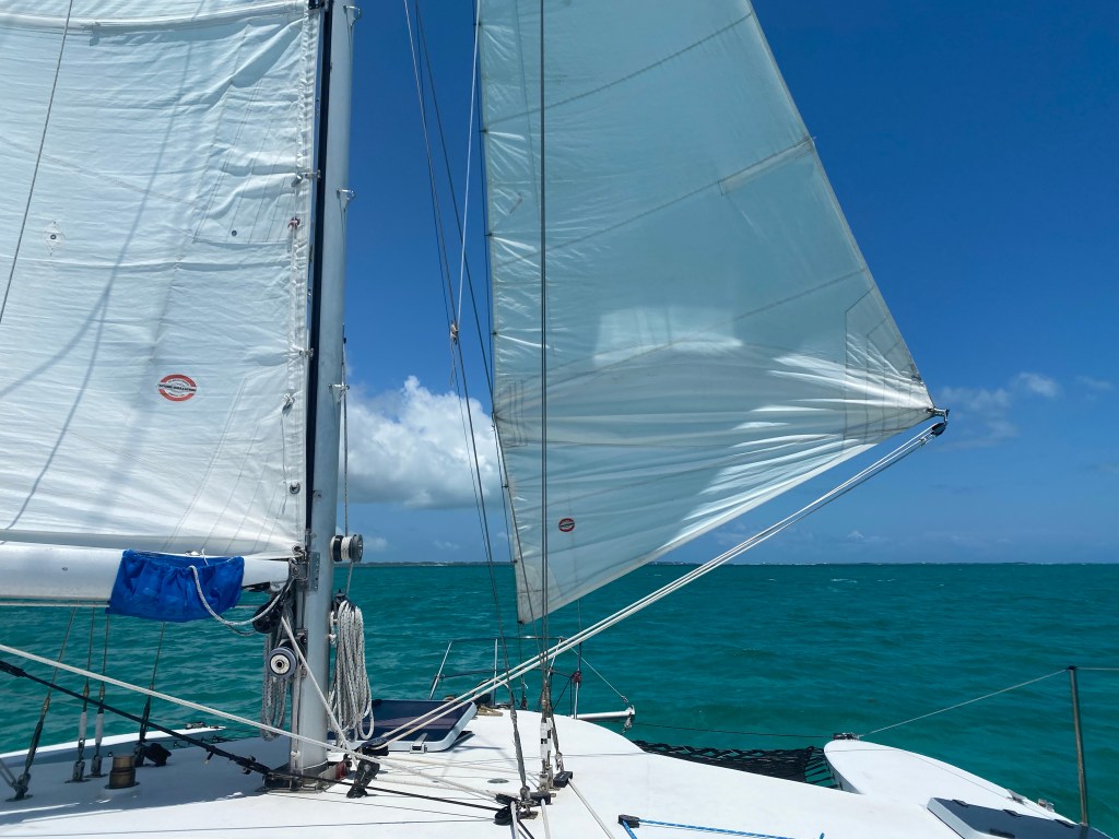 Sailing on these shallow banks is easy and fun with our 3.5 foot draft trimaran
