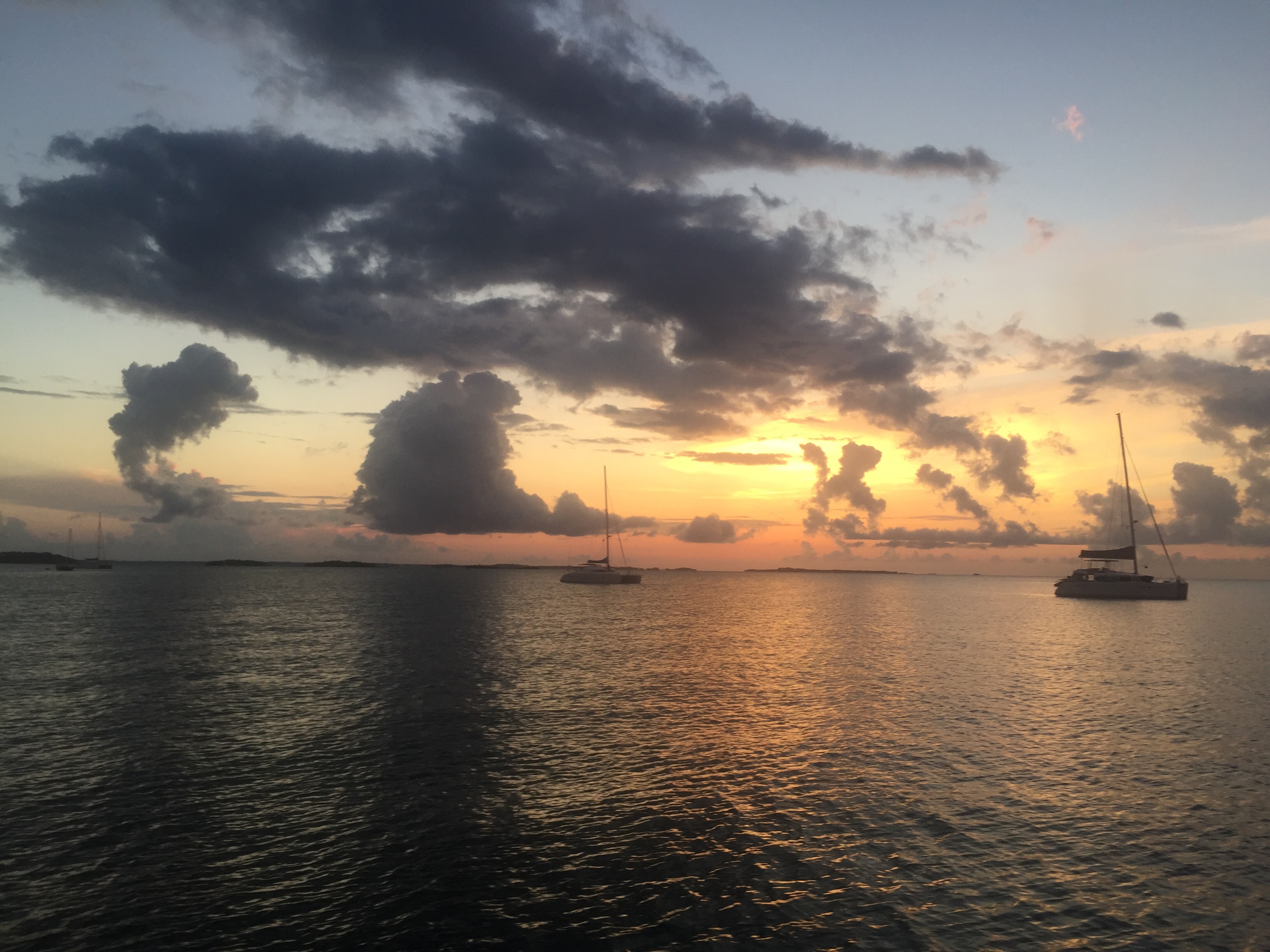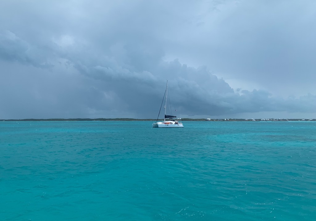 Having too much fun sailing. The timing was right for us to sail over night straight to Rock Sound in the south end of Eleuthera. Surprisingly, the next afternoon we sailed in with Wild Iris and Bebe, just before another thunderstorm approached.