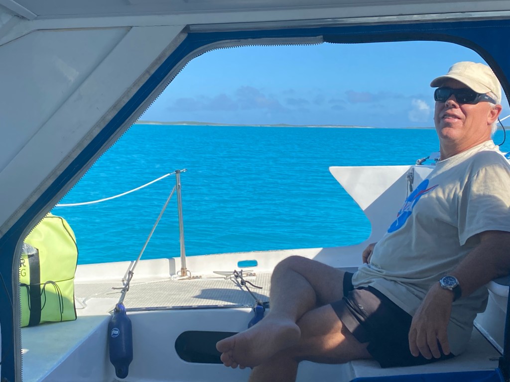 Wild Iris and Bebe sailed north to the Exuma’s while we stayed and greeted UK friends on Sunset Trader. So proud of David & Lizzie for letting us urge them to make an over night passage from Rock Sound, Eleuthera to George Town. They unfortunately encountered a frightening thunderstorm! Thankfully they experienced no boat problems from the storm.
